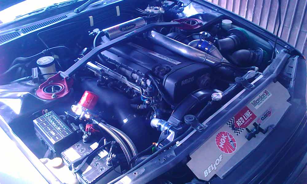 エンジンオーバーホール仕様に東名カム、ナプレックのハイレスポンスキットの組み合わせです。 タービンは34R用です。